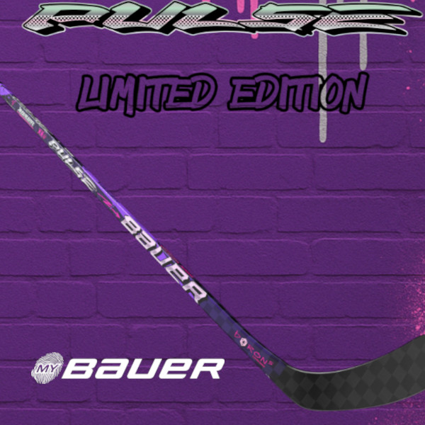 PULSE “GRAFFITI” LIMITED-EDITION STICK Inspired by the vibrant colors and freehand designs tagged across the world, this limited- edition PULSE is a unique graphic no one saw coming. This is PULSE “GRAFFITI” — Bauer's second stick in the BAUER Limited-Edition Series. Featuring bright purples, flashy chromes, and a mix of tags, this stick takes on a rebellious personality fit for anyone wanting to stand out from the pack.