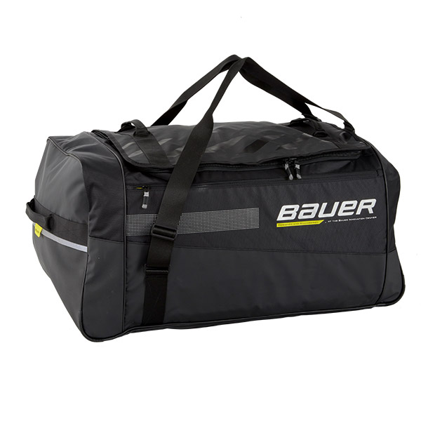 Bauer Elite Carry Bag (2021) features Heavy duty pro-tarp and Ripstop dobby weave construction with YKK zipper. Oversized U-shaped opening main compartment with internal accessory, skate, and baselayer storage options; side zippered accessory pocket; steel sleeve included. DryFlow grommets for ventilation; Adjustable length premium nylon webbing for carry or backpack use SR 36” X 17” 19.5”