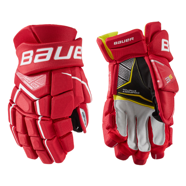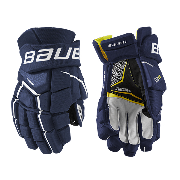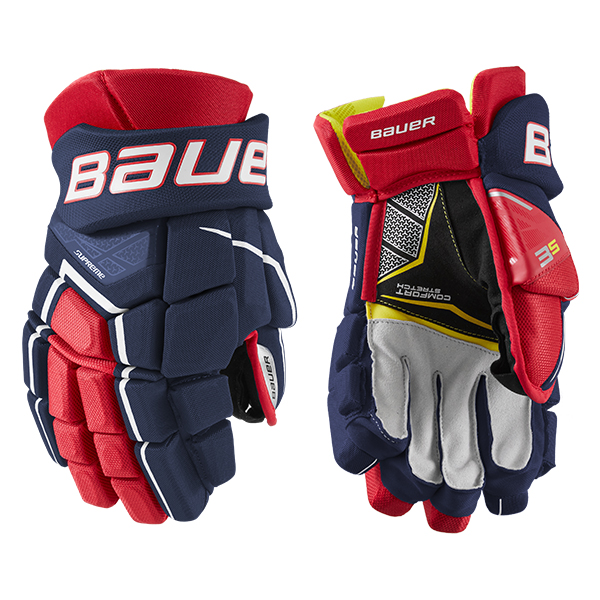 The Bauer Supreme 3S Hockey Glove is a competitive level glove featuring Shotboost fingers with MD foam and PE insert, a Thermomax sublimated liner and poly mesh shell with PU overlay.