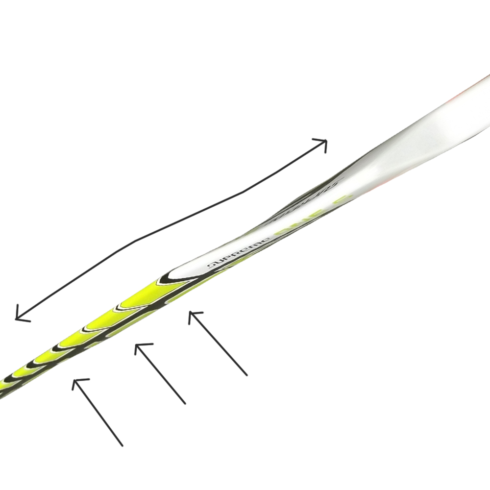 Supreme One.5 Goal Stick shaft features a double concave geometry for better feel. The paddle's ergonomic geometry improves rebound control, balance and reduces weight. Polyurethane core reinforces the paddle for increased stiffness and puck control and fiberglass reinforced outer wrap.