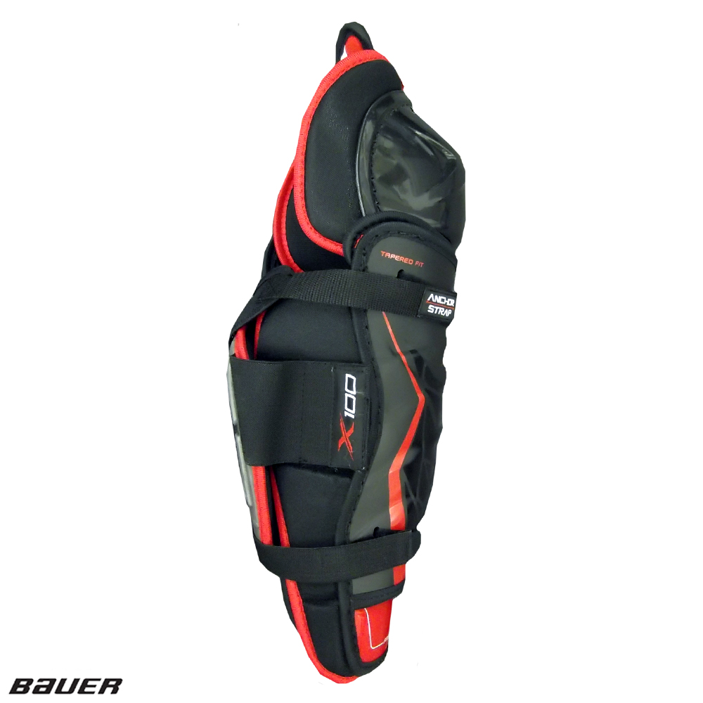 Like the APX2’s, the Bauer Vapor X100 Shin Guards will offer you a Tapered fit with a Free Flex Shin Cap and liner. This model is also equipped with a 3-strap system that includes an anchor top strap to help hold these in place while you Move! The Thermoformed Ribbed Shin Cap and Injected Knee Cap will keep the front of your leg protected while the Mid-Density Thigh Protector along with the Calf Guard constructed from Thermoformed HD foam and PE Inserts help cover the back.