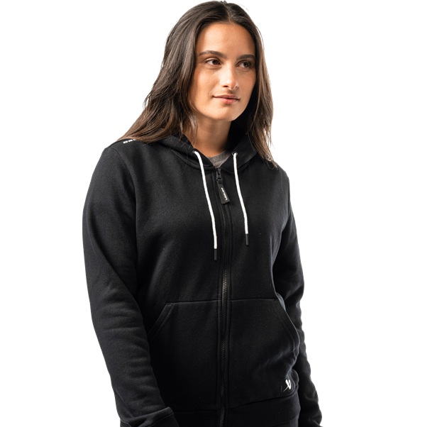 The BAUER Woman's Team Full Zip features a brushed back fleece fabric material construction with a lined hood with adjustable drawcord and kangaroo pocket with hidden zipper pocket. Adorning a Bauer wordmark logo on the shoulder, Bauer icon logo on the hood, and Bauer icon woven label on the left pocket, this full zip is perfect for post embellishment and all of your Team needs.