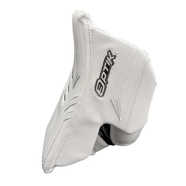 BRIAN'S OPTiK 3 Goal Blocker features e-Foam construction, Bri-Core Triaxle Carbon-Fibre Composite, HEX-AIR, a low and wide cuff, adjustable fingers. Includes the U-Turn Advanced Lacing system, which provides a secure, comfortable fit. The beveled board reduces weight while maintaining rigidity.