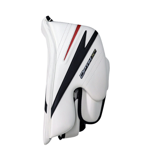 The Brian's OPTiK X2 Goal Blocker features a lightweight beveled blocker board, high density side hand & finger protection, and a beveled nose for paddle down. With a wide cuff opening, sidewall anchor strap and high density blocker sidewall.