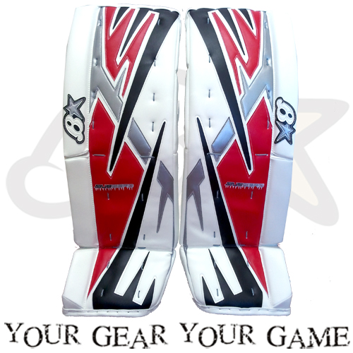 This system uses an adjustable, replaceable "Y" shaped strap placed over a large calf lock in the leg channel, along with a Velcro knee strap and leather boot strap, to hold the pad in place. This Smart Strap is better at both keeping the pad placed properly on the leg, and also at centering the pad back on the leg after going down on the ice. The Smart Strap elastic straps can adjusted for a custom fit, and the Velcro attachment can be placed in any desired location on the opposite calf wrap for a custom fit. This leg pad comes with full wrap around calf and leg protection.