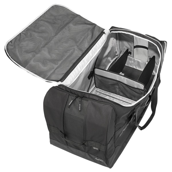 The CCM 540 Core Carry Bag is designed with smart organization and durability in mind. Built from high density 600D polyester with a PVC coating and featuring a spacious U-shape main opening with a durable YKK zipper for simple packing and unpacking. Inside, removable skate and helmet dividers plus accessory pockets keep your gear organized and separated. An external ventilated wet pocket allows damp items to dry faster, while side mesh paneling promotes airflow throughout the bag. A dedicated fast pocket allows quick access to personal items, and the ID pocket provides easy identification in a sea of like bags. Finished with reflective piping, CCM branding, and a grey contrast lining for a professional look.