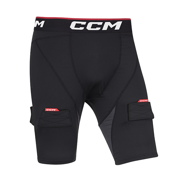 The CCM Compression Jock Short- Jr features an anatomical fit design with breathable mesh, dry and mool, locker room hook, odor resistant, and a writable name/number heat transfer label.