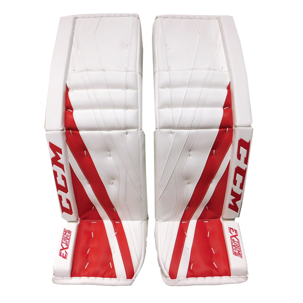 CCM Extreme Flex III Leg Pads have been re-engineered with pro goalie feedback. The Extreme Flex 3 are the lightest goal pads of the Extreme Flex line, providing explosive power pushes and game changing stability. Featuring Speed Skin™ Technology for quick gliding and explosive power pushes. The OWD (Optimized Weight Distribution) Core System provides great speed in the crease. The QK5 Strapping System helps further close the 5-hole.