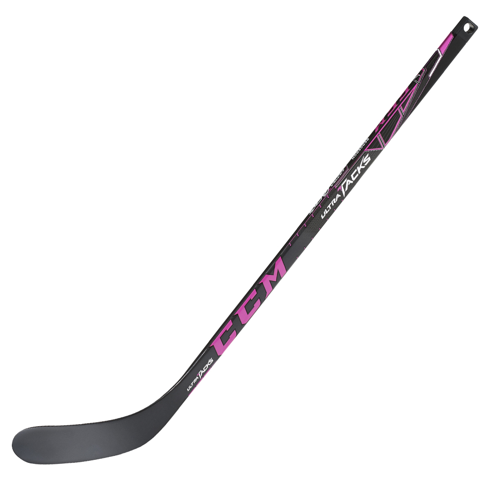 The CCM Pink Ultra Tacks Mini Stick uses a composite Construction and a 27-Inch shaft with the Patrice Bergeron model stick and is available in left or right curves.