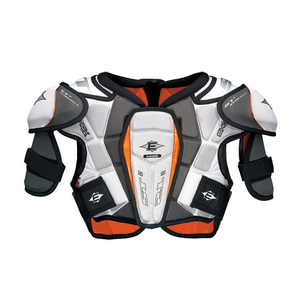 The Easton Synergy ST6 Shoulder pad features a floating sternum chest plate and Spine-Tec spine plate that provides protection for lower back and key areas. The SHOX proprietary system combines different densities of foams to disperse impact throughout pad assisting the player. Adjustable Bicep protectors are for a custom fit while a segmented high density foam with rib wrap protection covers mid-section of the player. An extended Arch and soft foam neck collars keeps the pad comfortable and safer during play. The low-profile shoulder caps protect while offering better mobility.