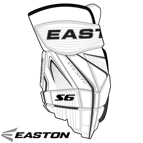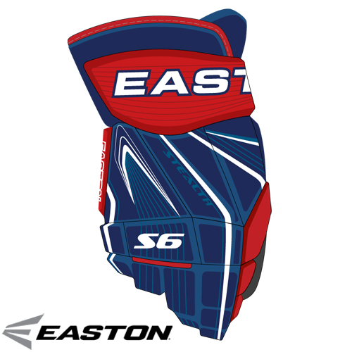 Easton's S6 hockey glove features ergonomic segmentation and dual density foam to offer comfort and protection. The shell is constructed with synthetic leather with a printed graphic. The palms feature beige Nash base with a durable black Nash overlay for the high abrasion zones.