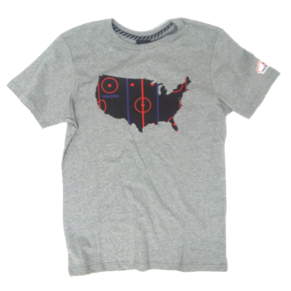 The Gongshow U.S. Of A Lifestyle Tee features black USA graphic designed to look like a hockey rink. 100% Cotton.