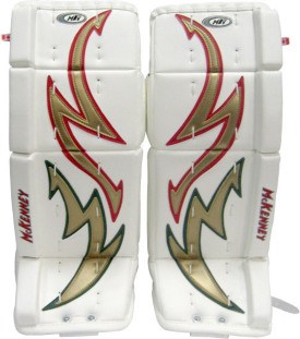 The GP 370 Pro Spec goal pad features a flat-front, square-profile design for maximum blocking area in a 9.5” wide intermediate goal pad. A full leg and knee cradle with elastic and Velcro straps allow for increased pad comfort and control. A larger thigh rise area and thigh boards optimize net coverage while down in the butterfly position. Other features include large square side rolls for maximum coverage and adjustable position nylon top straps.