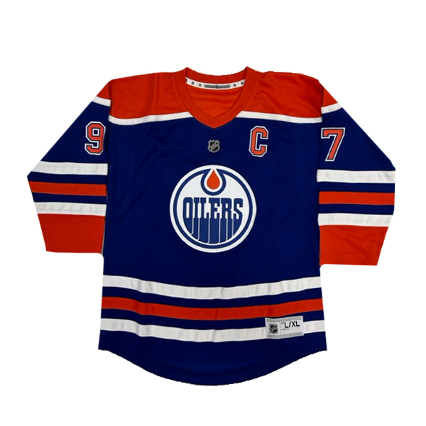 OUTERSTUFF Edmonton Replica NHL Jersey features air mesh and poly interlock construction. Screen Printing on Crest, Numbers, Names, and Shoulders.
