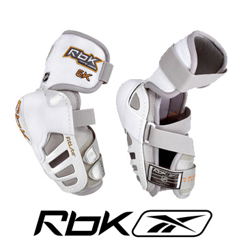 The 2007 RBK 6K elbow pads offer Fitlite construction with EPP foam for improved quality and lightweight protection. The unique ventilated caps provide additional ventilation for enhanced airflow to help keep you cool on the ice. The JDP caps are engineered to disperse impact energy away from the joint. The Lock strap is designed to secure the elbow pad in the proper position.