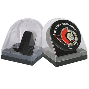 Display that game-winning goal or shut-out puck, autographed pucks, or just favorite souvenir puck. Clear plastic display holder holds one (1) puck.