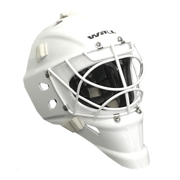 WALL USA W-4 Pro Cat Eye Goal mask is available in long chin & short chin sizes. Shell is ABS plastic & rubber composite. Extremely durable (withstood over 400 hammer blows). No ear ringing. Exceptionally light. Superior spring steel cage. Sleek design for deflecting impact. Adjustable waffle foam inner lining. Removable Velcro inner lining. Sweat Band included. Ventilated Nylon carry bag. 6 month warranty.