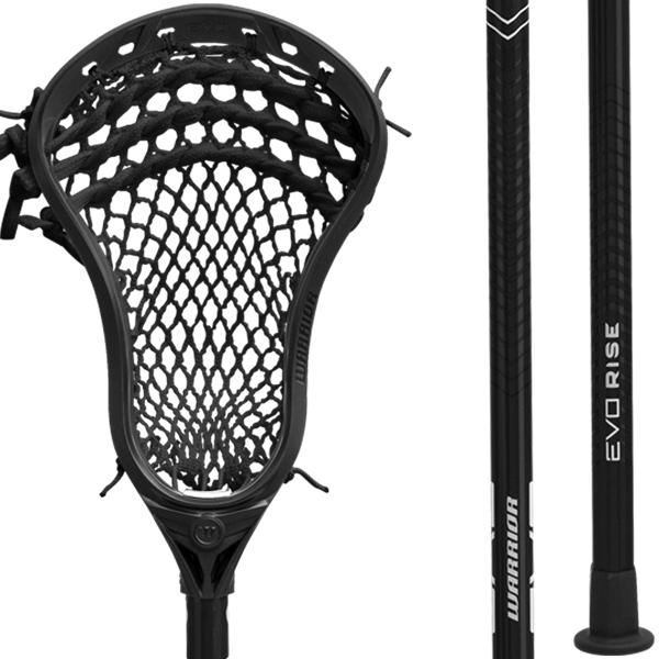 Introducing the ALL-New WARRIOR Evo Rise Complete Lacrosse Stick...a game changer from head to shaft. Featuring an iconic Evo head with classic sidewall, faceshape, and rounded scoop for effortless ground ball pickups. A performance grade 6000 alloy shaft provides all-around lightweight performance and durability, while a precision pocket includes high-grade semi-soft mesh with premium strings and shooters.